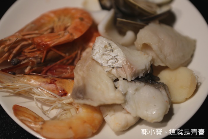 | 滿滿的海鮮料吃起來就是超過癮的,也可以在多加點肉盤,這樣一整份根本就是街邊的平價涮涮鍋一樣價錢,蝦子口感超彈牙以外,魚肉吃起來也不會鬆散,干貝等級也很高級,非常推薦給喜歡吃海鮮的朋友。 |