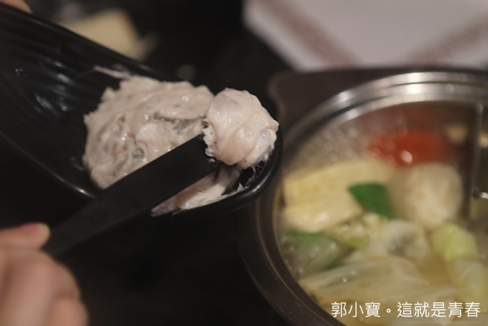 | 涮個幾下起鍋後放入嘴裡那滋味真的很滿足,雖然沒有很多油花但是卻是滿嘴油,吃的到瘦肉的咀嚼感以外那口感真的很嫩口,噗茲噗茲的口感真的很討喜。 |