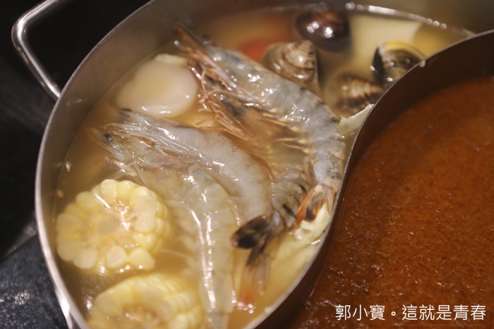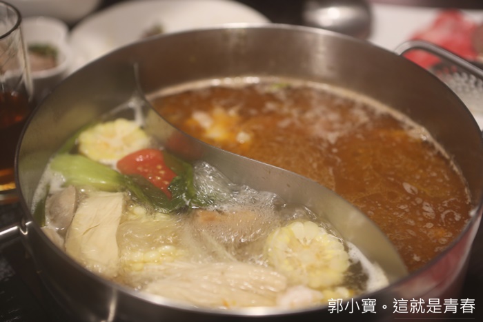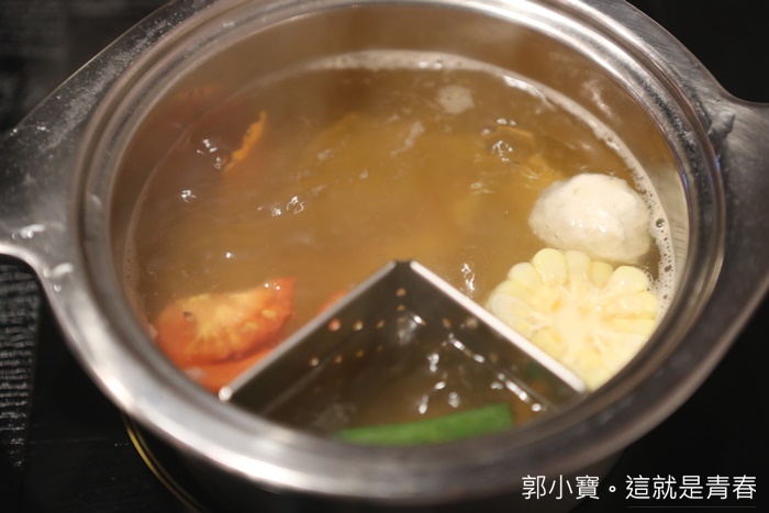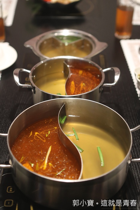 | 個人鍋的部分也可以選擇昆布或是麻辣,旁邊的小格子是麻辣鍋放的藥材,這樣花椒就不會四處浮在湯底裡面,很貼心。 |
