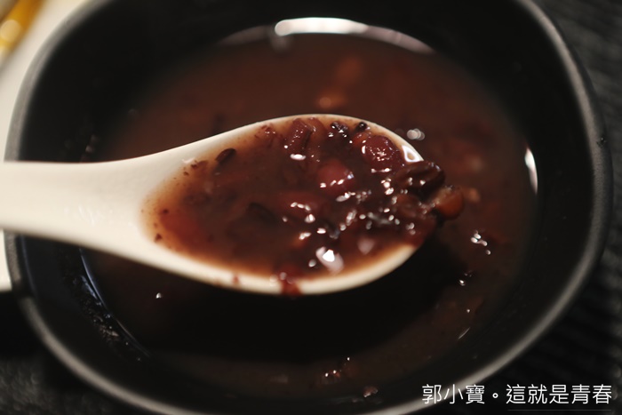 | 飯後還會送上免費的甜點,暖呼呼的紅豆湯真的很好喝,但是我就不知道甜點會不會依照季節變換,免費甜點真的好豪氣。 |