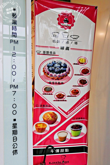 | 手作甜點起家的小螞蟻,每一款都有愛好者,每天新鮮出爐沒多久就搶購一空呀!除了有忠實顧客外,門口這大張廣告,各種甜點特寫,也吸引了不少路過的民眾目光,尤其女孩兒最無法抵抗甜食了,來到他們家都會立刻變成螞蟻呀! |