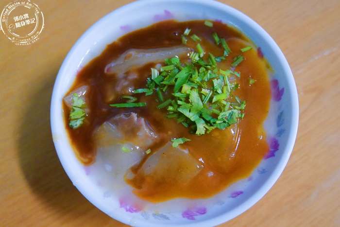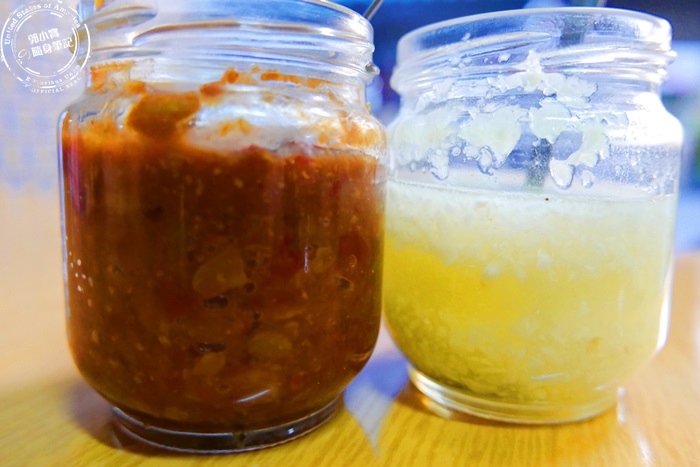 | 真的超推薦,桌上的蒜泥跟豆瓣醬,一定要加進去肉圓裡面,滋味真的很讚,別管嘴巴會有大蒜味,顧不了形象了,就是要這麼滿足的味道。 |
