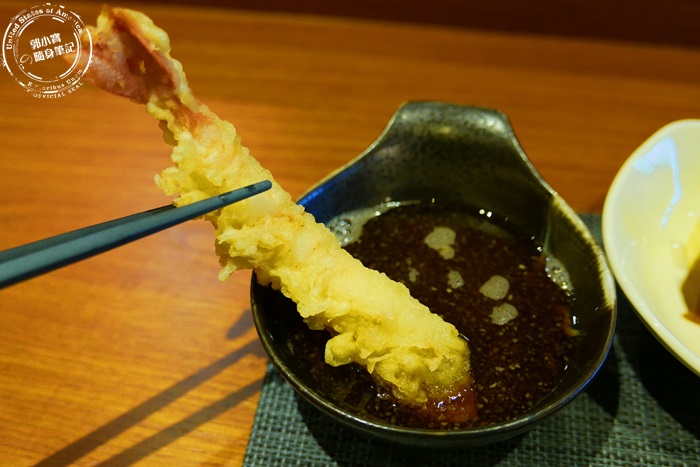 | 天婦羅套餐裡面蝦子有三隻、花枝一塊、白身魚一塊、蔬菜四種,很喜歡吃他們家的炸蝦,尤其熱熱的吃滋味更迷人,將去殼的蝦子裹上粉漿下去油炸,粉感不會太厚太有負擔,蝦子跟外衣一樣長,不會有只吃到粉的感覺,新鮮彈牙的肉質,配上酥脆的外衣,層次分明的太過癮,再沾上店家特調的沾醬,酸酸甜甜的可以解膩,還有白蘿蔔泥的微辛辣爽口,味道清爽好唰嘴。 |
