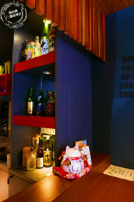 | 這一區擺放各種來自日本的酒水,還有可愛的招財貓裝飾品,木質裝潢就是很有日本味道,高雅簡約而且賞心悅目。 |
