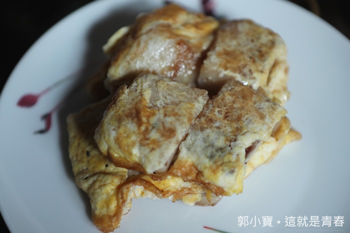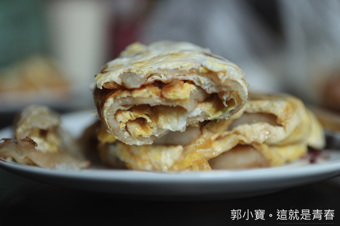 | 雙蛋蛋餅咬起來的口感比較紮實以外,就是那種小時候吃的炸麵糰的感覺,Q中又帶點咬勁,但是咀嚼中可以吃到麵皮本身的麵甜香,口感嚼勁我很喜歡,因為兩顆蛋的蛋餅香氣一定是非常重的,嗑完這一份蛋餅會有莫名的滿足感。 |