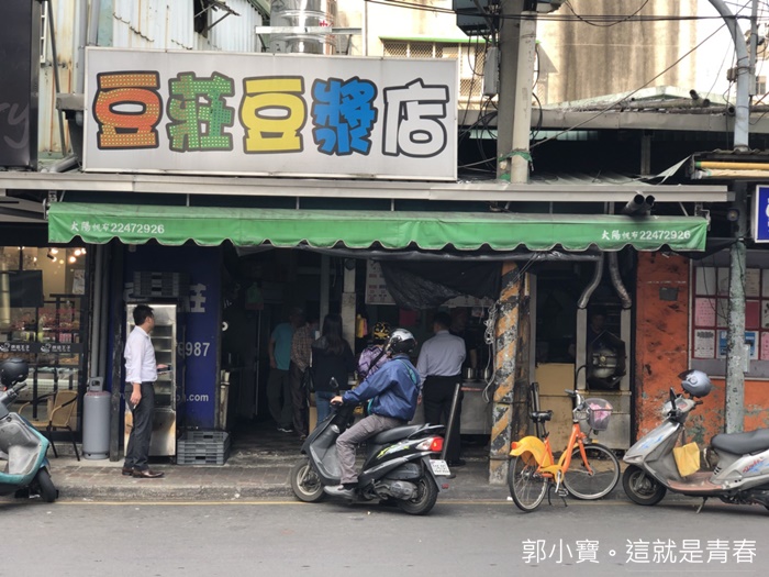 | 搬來江子翠後我們最常吃的早餐就是這一家豆莊豆漿店,第一次經過他的時候看到大排長龍所以就跟著人潮進去排隊,吃完後覺得還滿好吃的,後來回家一查網路資料才知道他是在地名店非常有名,很多人推薦他們家的蛋餅,號稱江子翠三大早餐豆漿店。 |