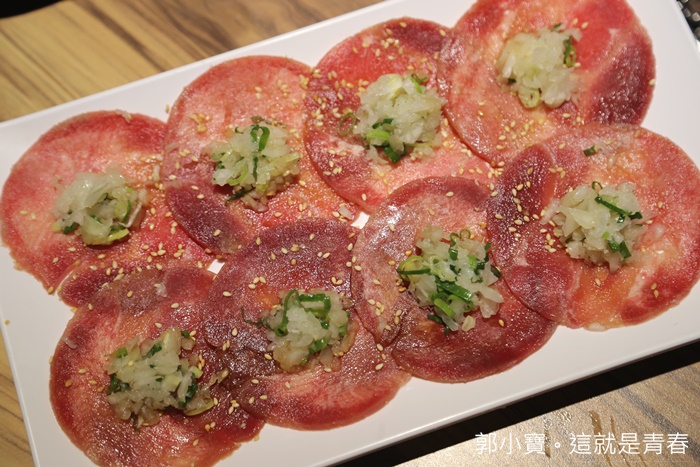 | 蔥鹽牛舌超大一片滿滿8片只賣150真的有嚇到我,這在台北基本上沒有個2.3百真的吃不到,立馬夾上一片下去燒烤,我喜歡牛舌也不用烤到全熟,出點血水大約7.8分熟就可以享用了,搭配店家調製的蔥鹽增加了美味的層次感,咀嚼起來超美味的! |