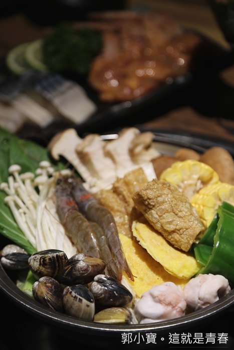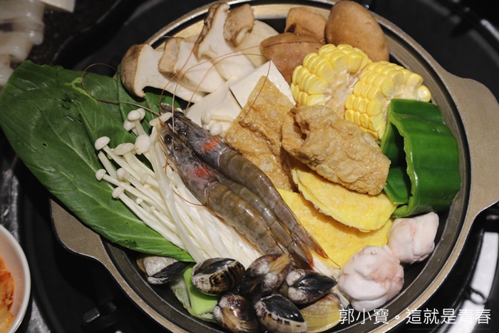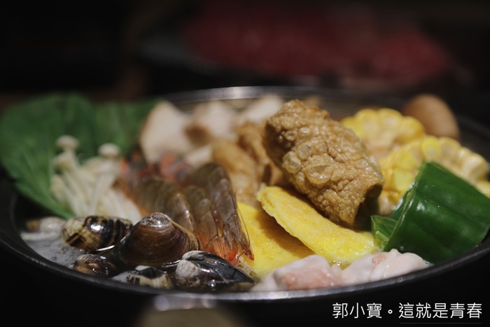 | 端上來的時候我也被這超彭湃的火鍋嚇到,一點都不太相信這是附贈的火鍋,裡面滿滿的食材還有海鮮、火鍋料,非常超值。 |