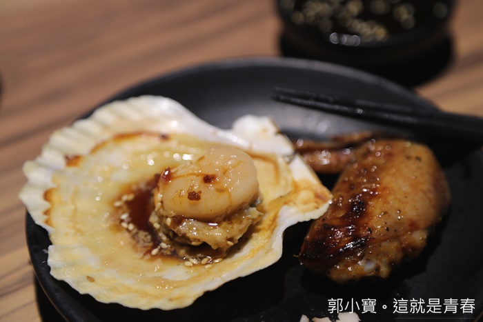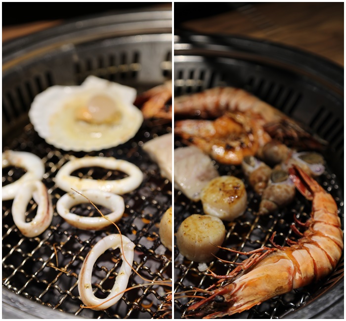 | 瞬間一開爐吃完牛舌後就是海鮮上陣,一整個就是非常的歡樂,草蝦下次有機會我可能會多點幾隻,品質真的非常好沒話說以外,干貝跟扇貝的新鮮度也都很好。 |