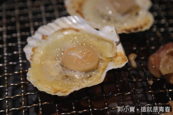 | 扇貝的尺寸也像一個掌心一樣大,燒烤起來有沒有怪味,有一些不新鮮的光是烤的過程就會聞到怪怪的味道了,這邊的烤爐溫度也強,所以一下子就散發出扇貝的迷人香氣了。 |