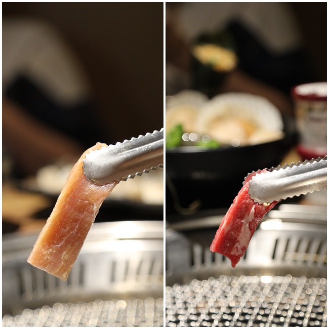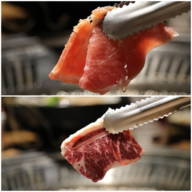 肉品的燒烤拿捏真的很重要,如果你對燒烤不是那麼在行,有時候也可以請服務人員幫妳,這邊的服務人員都還滿熱心的,幾乎跟它們提要求都會盡可能地滿足消費者,我個人比要喜歡牛小排的部位,因為油花吃起來滿揪C又不會太膩,肉質的部分也很不錯,色鼎的沙朗切得比較厚所以吃起來軟嫩卻還有豐富的咀嚼感,牛肋條吃起來嚼勁還滿好的,至於翼板的部位也是很多人喜歡的,因為比較沒有油花,純粹享受瘦肉的滋味XD