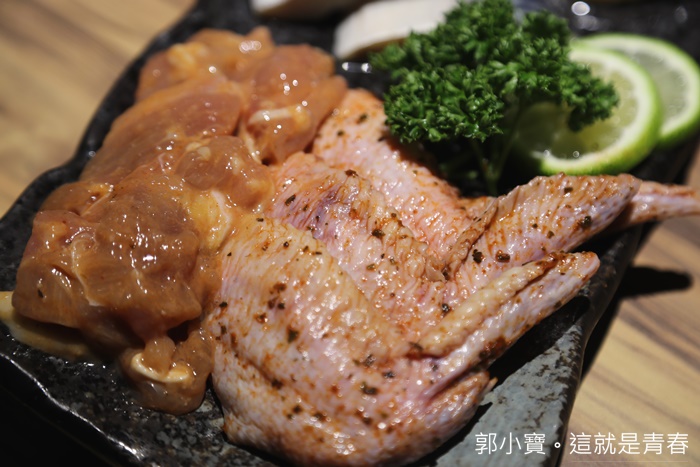 魷魚圈跟白蝦的量給的非常大方以外,雞肉的部分選擇是一隻雞身上最精華的兩個部位,就是雞腿跟雞翅,其實很多老饕都說雞翅的肉是最細緻的,雞腿的話當然就不用我多介紹了,雞腿切片方便燒烤入口,雞翅就是要一整根拿起來啃才過癮!!