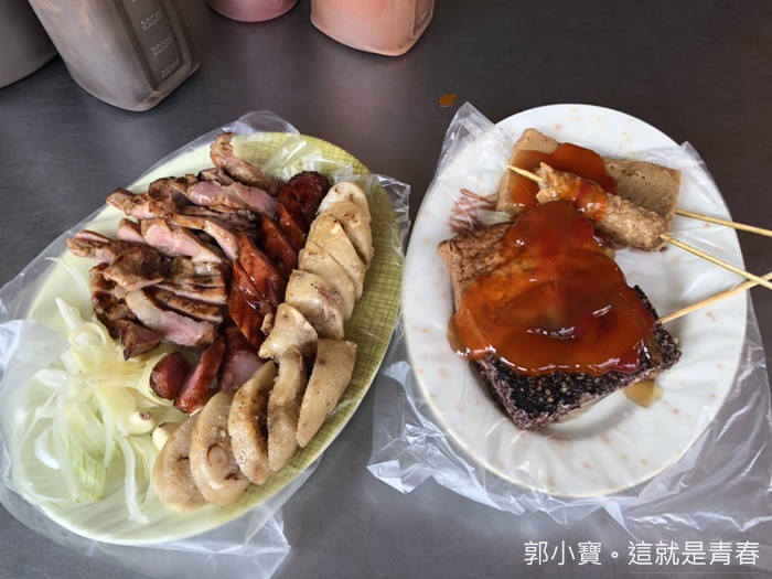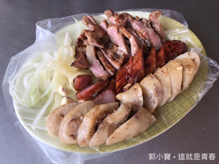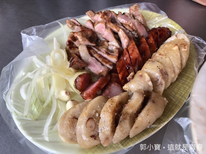 | 大腸根香腸我覺得尚可,燒肉還滿不錯的,比較有口感跟咬勁,加上剛剛炭烤上來的香氣還有遺留著,只是吃到這邊的時候我發現我好像點了有一點點多,大腸挺大根的,除了大蒜以外老闆還多加了一點洋蔥絲。 |