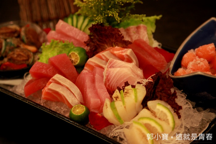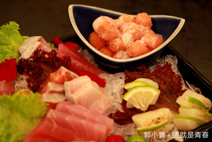 | 生魚片切片都滿有厚度的,相當不錯,裡面的生魚片大概有六種生魚片。 |