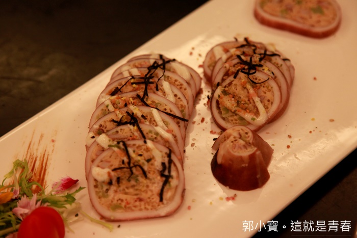 | 這也是滿費工的一道菜,把食材塞進肚裡並不會困難,困難的是可以切的薄薄一片食材又不會鬆散才厲害,我真的還滿喜歡的!! |