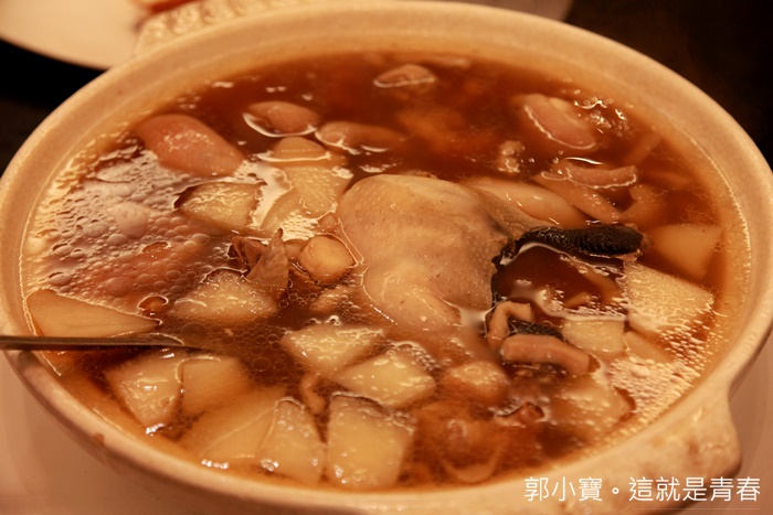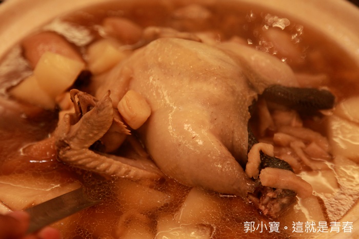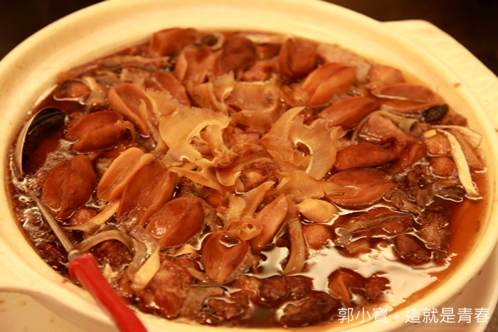 | 這一鍋真的也太豪華,其實不用吃就知道這一定好吃的,光是小鮑魚隨便撈都滿滿的一大堆非常豪華,裡面還有豬腳跟排骨等等的肉品,但是湯頭喝起來卻滿爽口的,超推薦! |