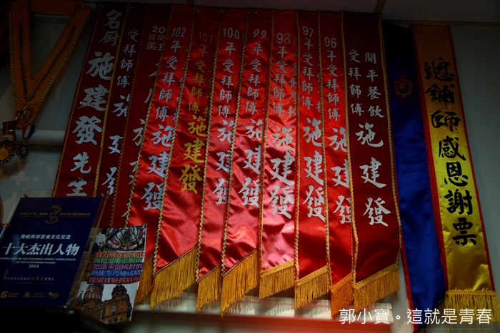 | 有幸偷窺到阿發師的藏寶庫,滿滿整面牆的獎盃跟受獎帶真的超狂的,難怪很多人一提起阿發師就豎起大拇指,當天大哥大姊們還特別指定交代要阿發師親自下廚料理,真著還滿榮幸可以吃到阿發師親手料理的美食。 |