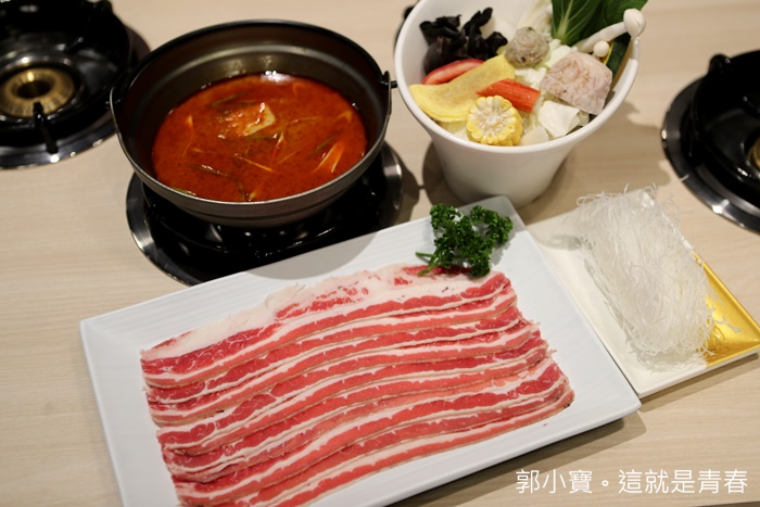 | 友人搭配的肉品是梅花豬,這樣一整套乾濕兩種鍋物確實不貴,建議男生可以點,如果多人一起來也可以點不一樣的乾鍋,大家分著吃可以吃到更多口味的乾鍋,羊雪花的份量也是六盎司的份量。 |