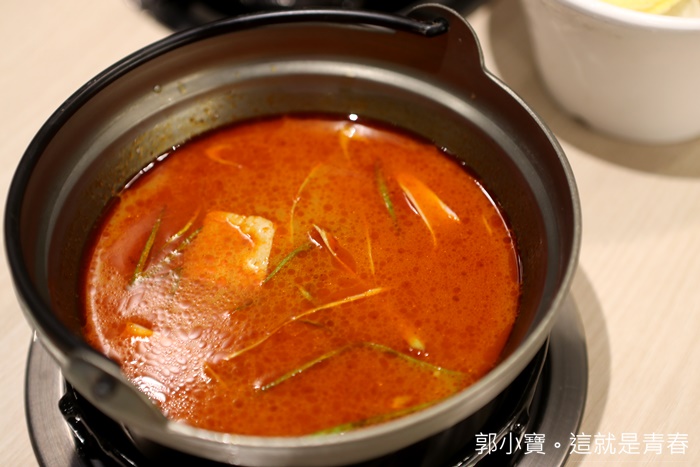 | 我個人最愛的就是它們家的乾鍋龍骨湯頭,基本的龍骨湯頭本身就很好喝,但是搭配乾鍋的鍋氣根乾鍋醬一整個超無敵,不過加湯加到最後味道就沒一開始的好喝的,因為乾鍋醬跟香氣會逐漸變少,乾鍋醬是沒有把加的,畢竟當初是做乾鍋才有辦法爆出來的香味。 |