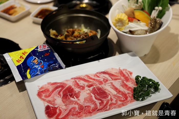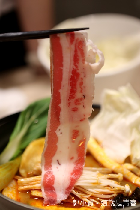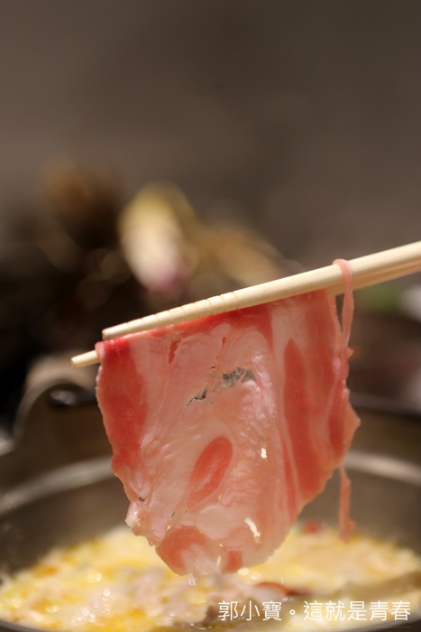 | 梅花鍋搭配乾鍋龍骨湯頭非常好吃,因為湯頭本身的濃郁到可以讓肥肉的部分沒有那麼膩口以外,由花的地方吃起來的口感帶點Q度,跟瘦肉一起咀嚼非常好吃。 |