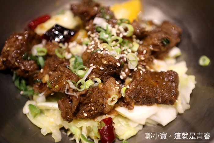 | 乾鍋牛腩是我朋友點的,一上桌的時候乾鍋牛腩的香氣非常重,牛腩看起來份量還挺多的,一口咬下帶點黑胡椒香氣還有鍋氣的牛腩確實不錯,整體的口感偏耐嚼,因為香料較多所已味道很豐富,牛腩特有的奶香味有點邊緣。 |