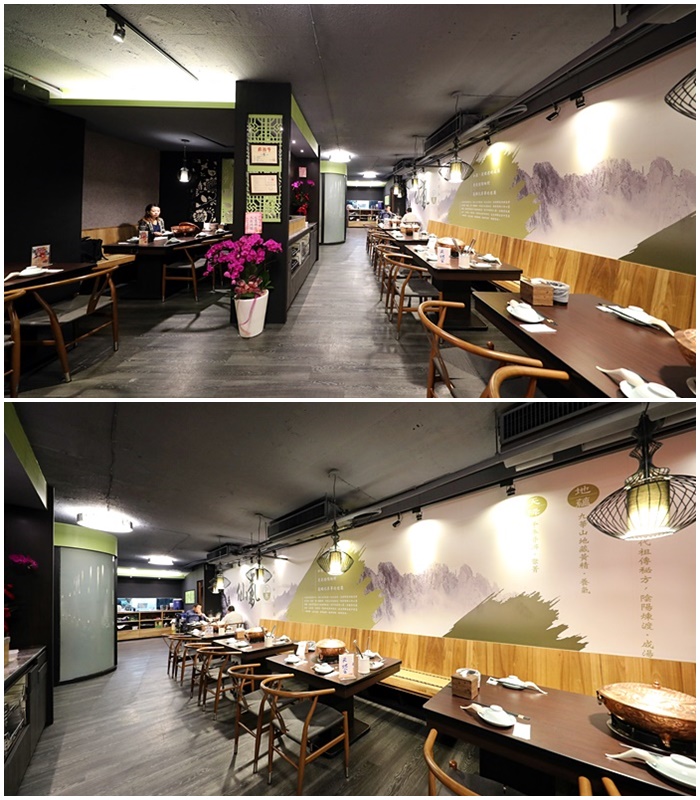 | 店內的裝潢跟壁紙都是走比較中華風,本來想說怎都沒客人,後來才知道右邊這一整排都被包場了,沒想到開幕沒多久名氣就打得響亮,瞬間就被包場了,不知道是不是肉品買一送一做得很成功,但是讓我最有興趣還是他們家的仙氣鍋XD |