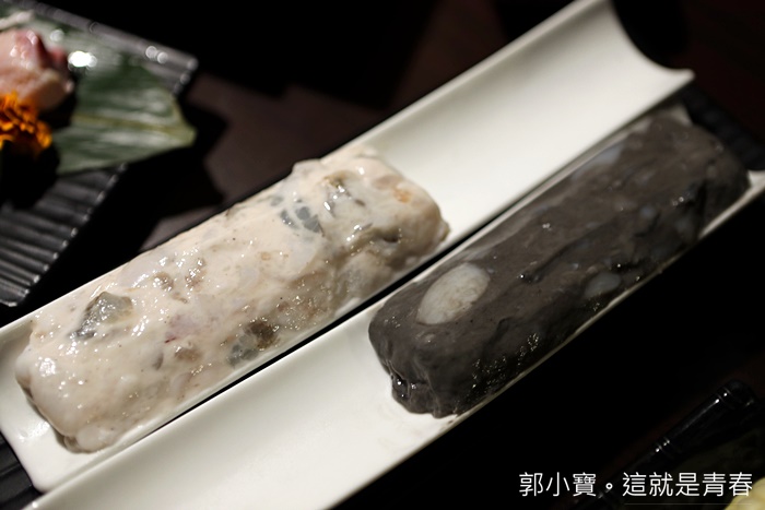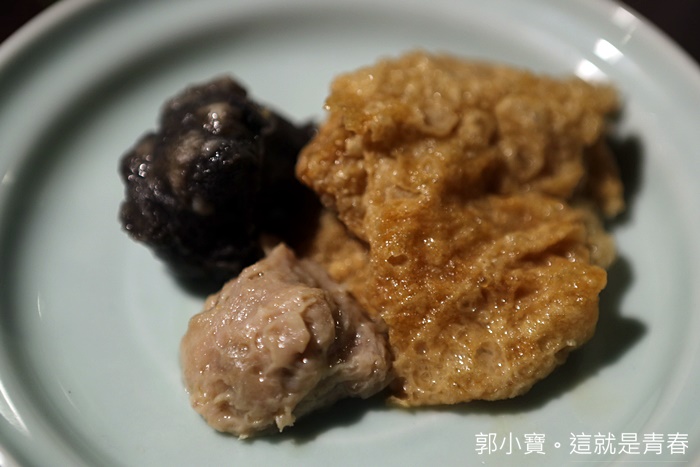 | 它們家的墨魚漿跟花枝漿算是讓我滿喜歡的,每次咀嚼都可以咬到彈牙的花枝塊,還有芋香貢丸還貼心地將它分切半顆,每一口吃起來的份量剛剛好,芋頭香味也滿重的,搭配仙氣鍋湯頭還滿順的。 |