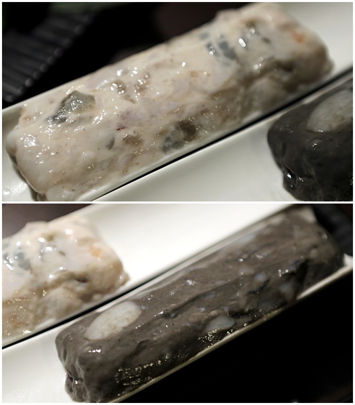 | 手工綜合滑有花枝漿跟墨魚漿兩種食材,都滿真材實料的,可以看到裡面都是滿滿的餡料。 |
