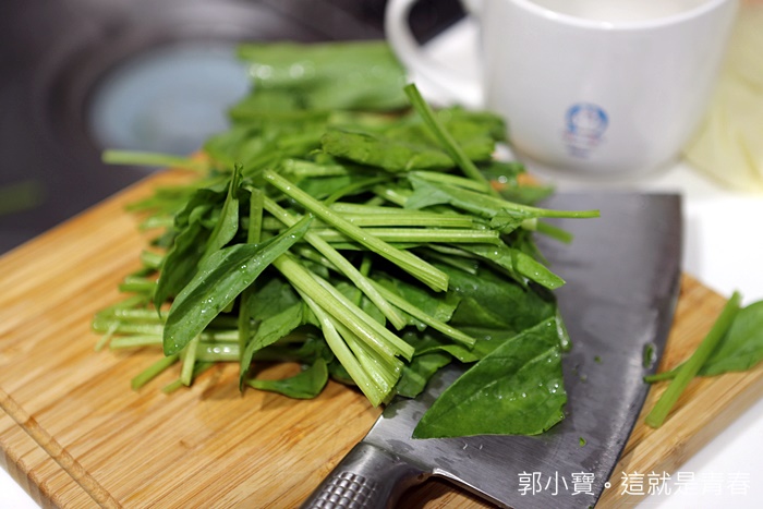 | 接下來就把有機波菜切斷放入食物調理機,寶寶粥的重點就是要分階段餵食寶寶的營養活力,一開始建議只用蔬菜就好,肉品到8個月左右再開始加進入,要小心千萬別有硬物,所有的食材都要仔細檢查。 |