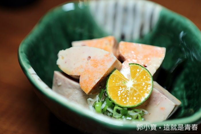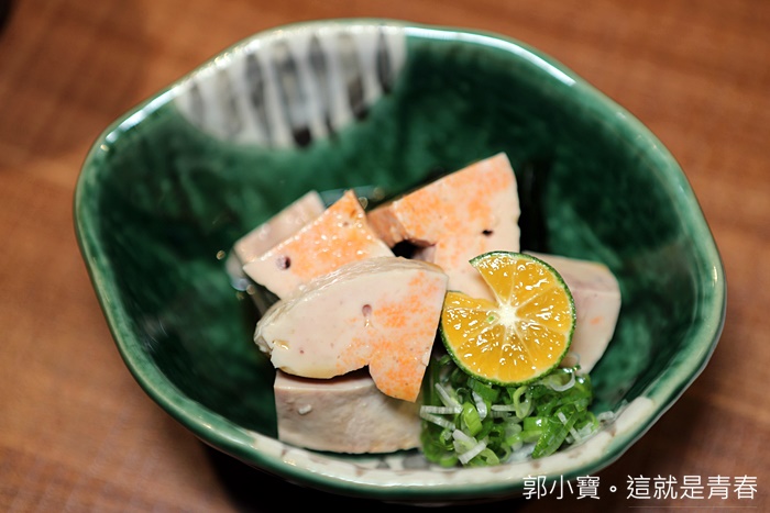 | 夾了一大塊的鮟鱇魚肝放進嘴裡的第一個感覺是驚艷,那魚肝的滑嫩與細緻表露無遺,油脂非常豐沛以外,那化在口腔裡的油脂真的讓人喜愛,跟我一樣喜歡重口味的其實可以不用擠柚子,真的非常的美味,必點!!! |