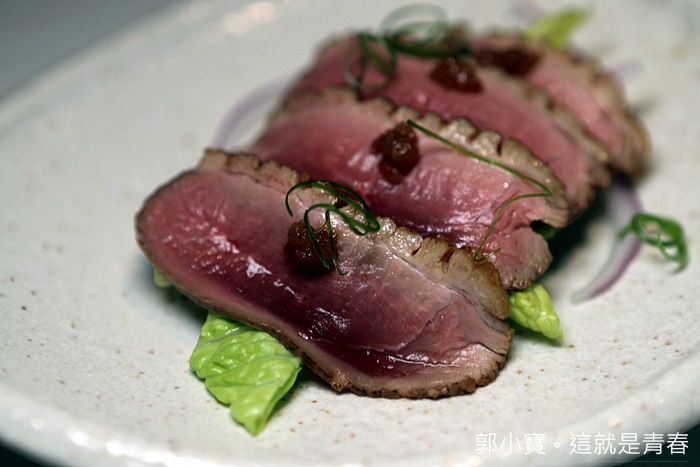 | 稻香煙薰的味道非常濃郁,搭配美味的櫻桃鴨肉半熟的口感是我最喜歡的,肉汁非常的甜帶點煙燻味,我個人覺得這一道還不錯,櫻桃鴨肉挑的很好。 |