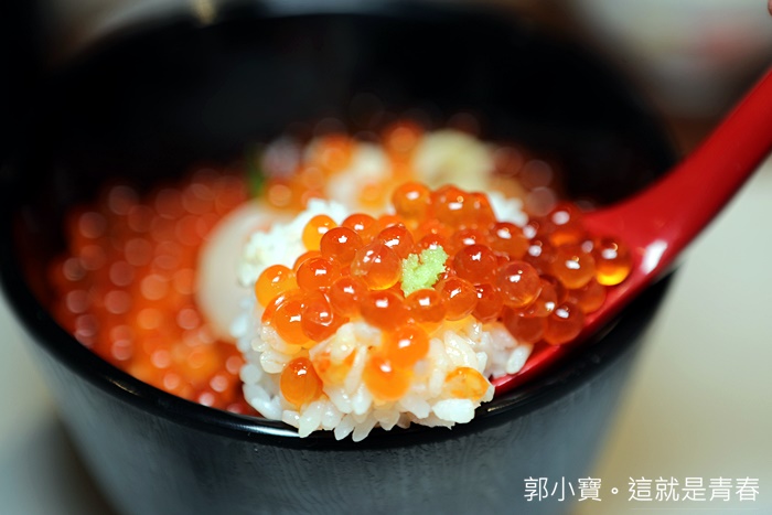 | 鮭魚卵真的是我的心頭好之一,滿滿一口的鮭魚卵讓他在嘴裡逼逼啵啵真的超有快感的,可以過癮的享受鮭魚卵真的還滿幸福的,米飯也用的不錯,咀嚼起來有米甜香氣。 |