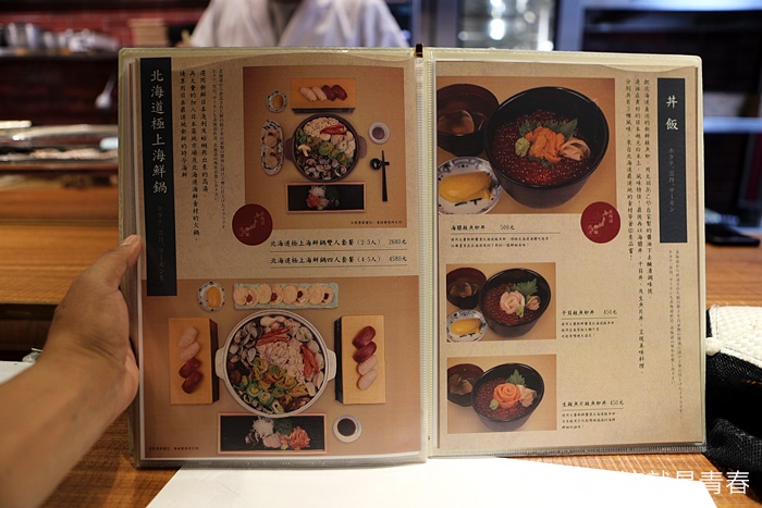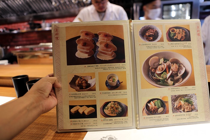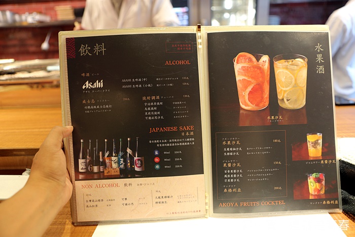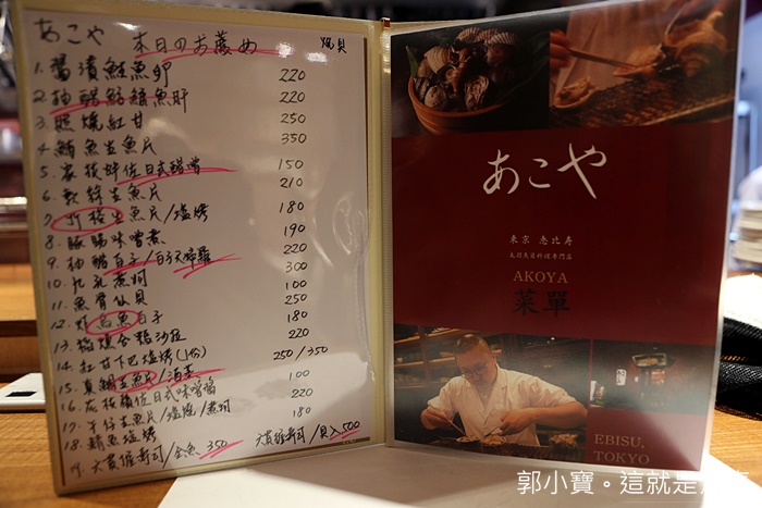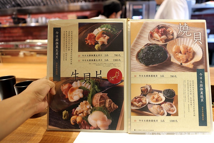 | 看了一下菜單,貝類料理的部份跟東京有些不同,但是東京的幾樣招牌通通都可以在台灣あこや太羽可以品嘗到,台灣あこや太羽還提供了更多日本店沒有的商品,其中第一頁的菜品都是主廚每天更新的。 |