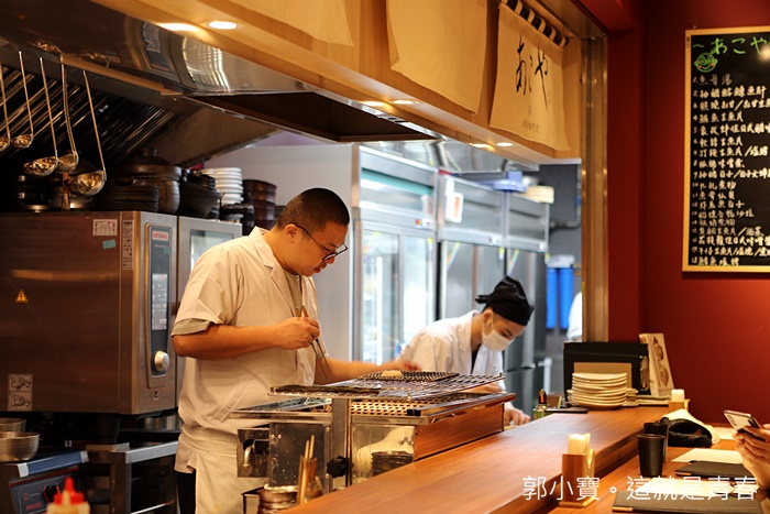 | あこや太羽的廚房整理的很乾淨,器具也都放的井然有序,看起來就非常的舒服,做在板前看著師傅一道一道的料理出爐有股莫名的滿足感,順便瞧瞧這邊的客人都喜歡點些什麼。 |