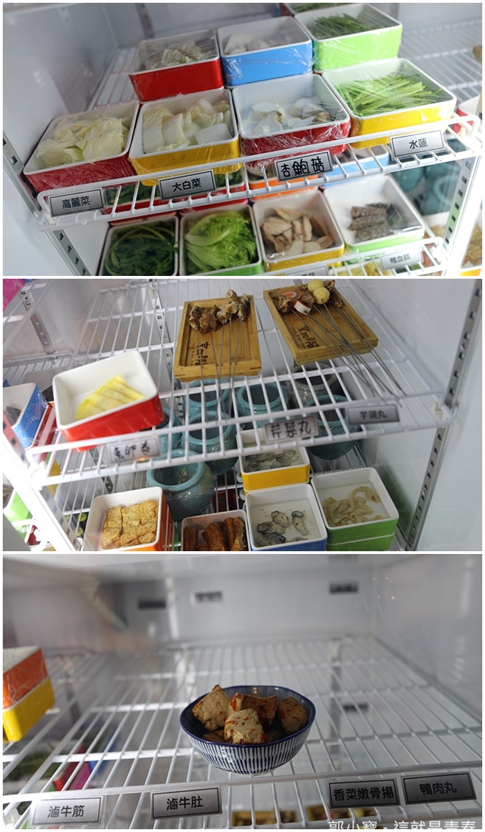 一旁的冰箱有其他的食材,一格一格的小方盒每一盒都只要30元,這價位真的超便宜的,有各式各樣的蔬菜,份量也都還滿多的,重點想吃什麼火鍋料都可以自己選擇,不用像以前一樣一點就是一大盤,吃完再去拿即可,麻辣滷豆腐也是一碗30元,幾乎是路邊攤的價格了。 |