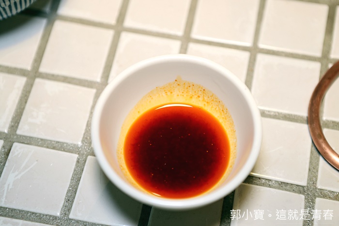 | 特別推薦一下它們家的辣椒油,對我算是很敢吃辣的人說,它們的辣椒油真的算是很辣,老闆說裡面除了有各種辣椒以外,還有鬼椒也有在其中,香氣層次非常豐富以外,那辣從後面衝了上來真的很過癮!!! |