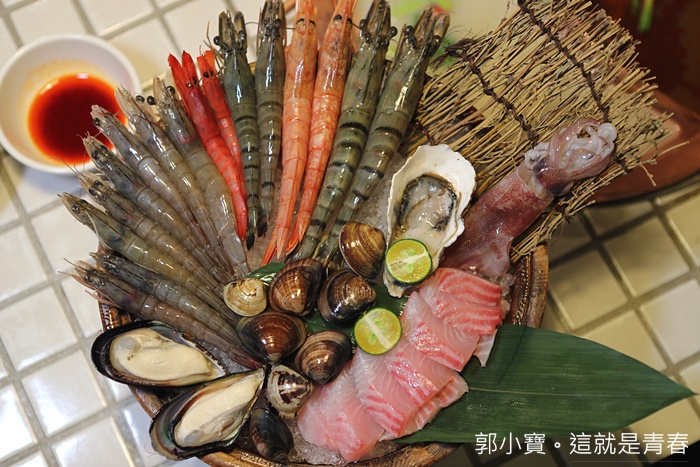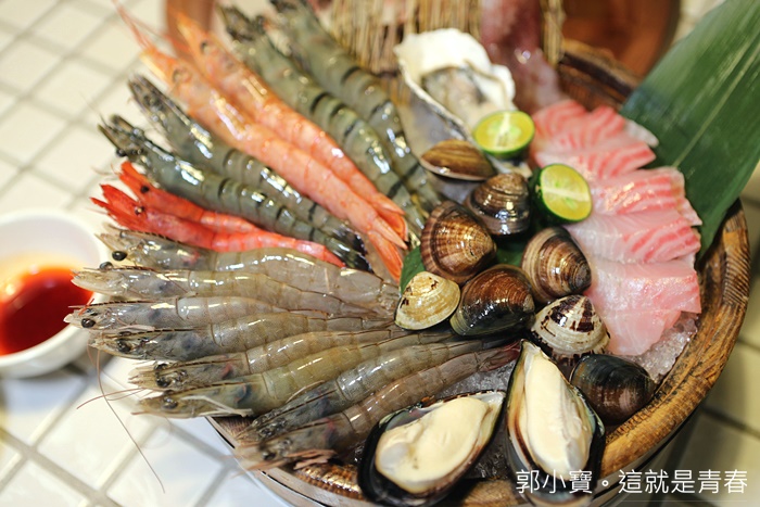 | 海鮮食材都很新鮮,蝦子的品種裡面竟然還有甜蝦,這真的也太超值了,每一種蝦子的口感都非常彈牙,鯛魚片口感也不會鬆散,這一盆在台北基本上賣個7.8百跑不掉,沒想到京四郎的價錢超級划算!!! |