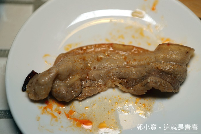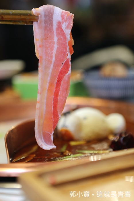| 煮完厚的豬肉也不會散成一團,這樣入口的豬肉可以咀嚼本身豬肉的完美口感,吸附的麻奶鍋的醬汁真的非常美味,整個層次味蕾相當討喜。 |