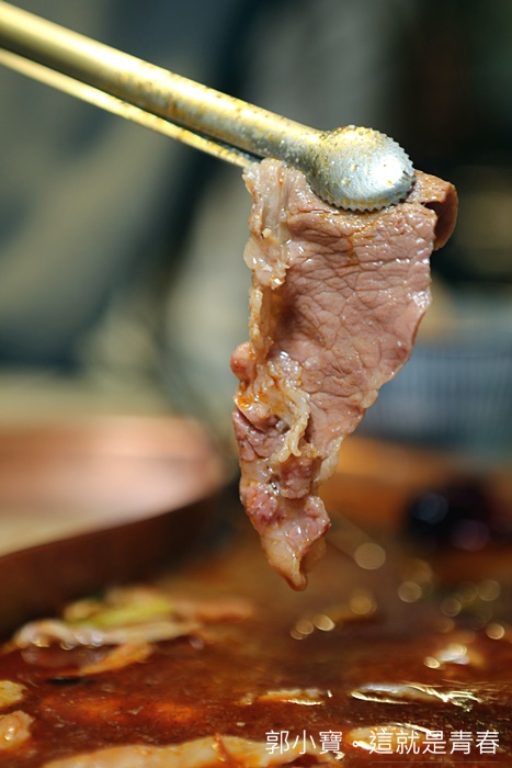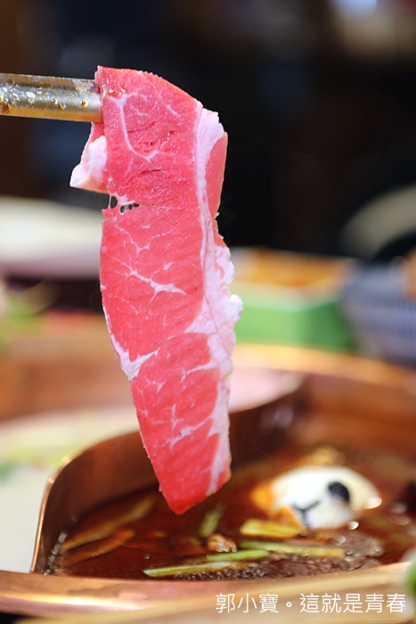 | 牛肉夾起來一樣不會散成碎片,厚度也切得滿厚的,下鍋涮個幾下就可以起鍋了,煮完厚的感覺看起來超級好吃的,我覺得她們家的麻辣牛奶鍋真的很特別,涮肉品我老婆一整個超喜歡的,重點是他們家的奶香味真的很濃。 |