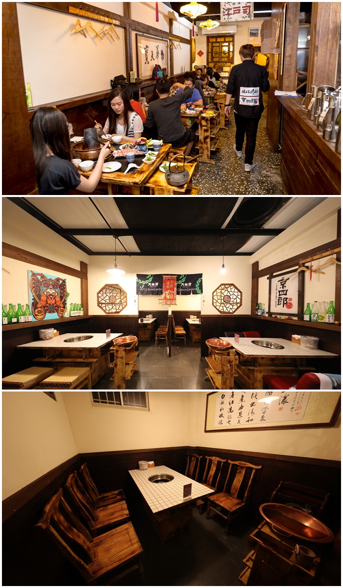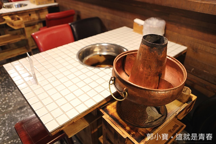 | 京四郎依然保留著它們最知名的紫銅火鍋,這種用木炭加熱的火鍋真的煮酸白菜別有一番滋味,還有置物小桌也很方便,不匯點了一堆東西後整個桌面都被塞滿了沒地方放東西。 |