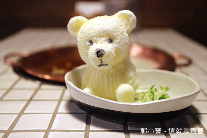| 這畫面真的還暪可愛的,剛好符合來宜蘭就是泡溫泉的氛圍,連小熊都泡在熱湯裡超可愛的,只是因為一整隻小熊都是冷凍過的高乳脂鮮乳,所以煮滾需要一點時間,店員說比例是3:1,所以喝起來的風味會很特別,其實我也滿期待的,但是這口味應該女生會比較喜歡! |