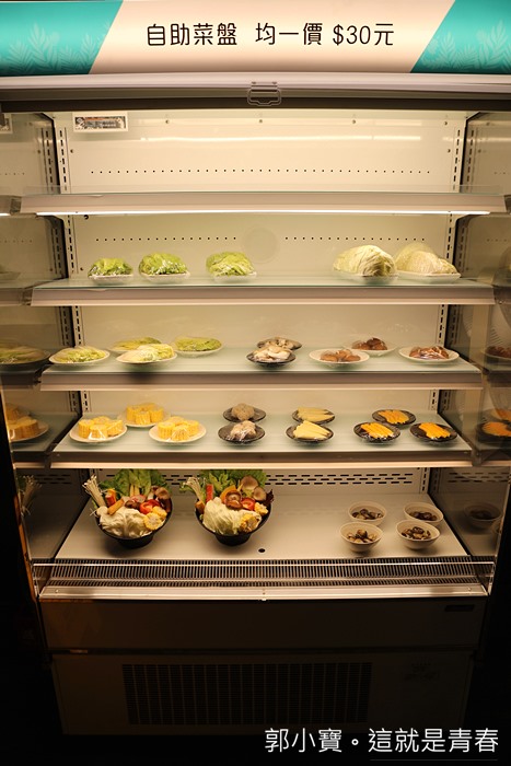 | 這邊還有一個自助菜盤的冰箱,這裡面不管妳拿什麼通通均一價30元,蔬菜的量都還滿多的,整體看起來算是還滿便宜的,且種類還滿多的,當天我們大概快兩點才到,所以已經很多都被中午的客人拿光了。 |