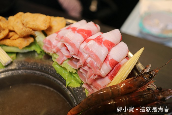 | 鐵帽鍋除了鍋緣的牛肉以外,還有附上450g的梅花豬,份量非常的多,四個人吃也很滿足,我個人火鍋豬肉片偏愛梅花豬,吃起來比較不會那麼油也不會過膩。