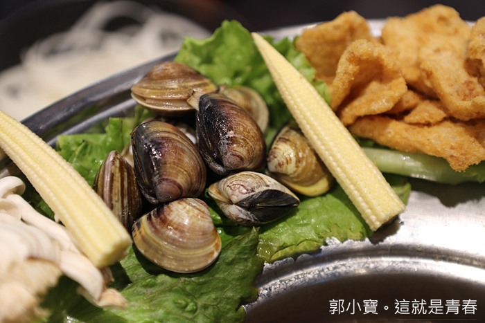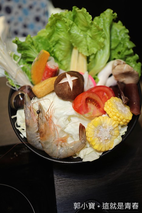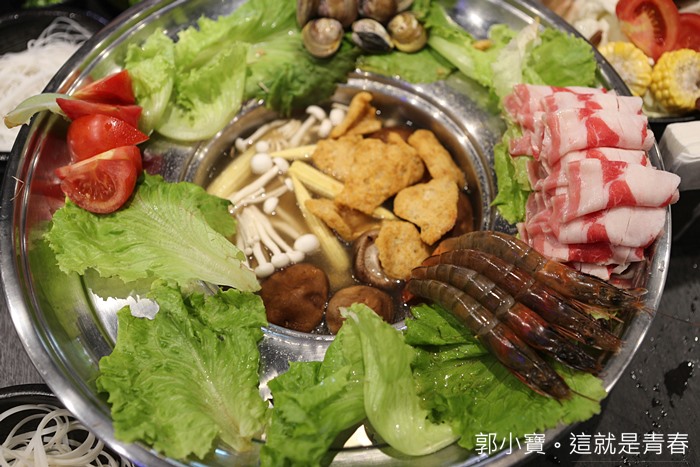 | 菜盤的部份也很大份,其食鐵帽鍋上已經有一些蔬菜了,除了蔬菜以外依然有蛤蜊跟白蝦及其他火鍋料,整體來說算是相當豐富的菜盤。 |