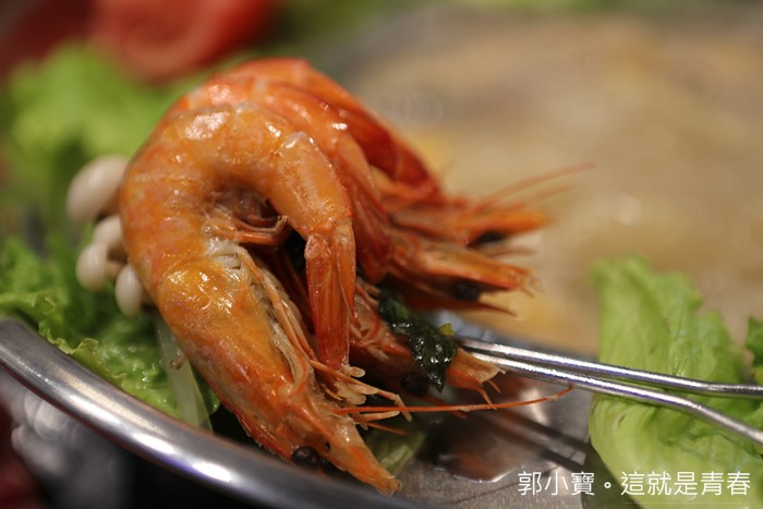 | 白蝦的品質也很好,鐵帽鍋裡面本來就有三隻蝦子,還貼心的用牙籤串起來,煮熟後可以先撈起放在鍋緣保溫,白蝦的肉非常彈牙且又鮮甜。 |