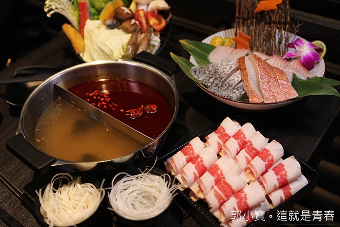 | 其實我很推薦它們家這一份雙人麻辣鴛鴦鍋,600元的價位可以擁有海鮮跟肉品真的還滿超值的,魚盤呈裝的魚肉分量很多,魚肉的部分有鱸魚、鯛魚、青魚,很適合搭配昆布鍋,熬煮起來的湯頭更是鮮甜。 |