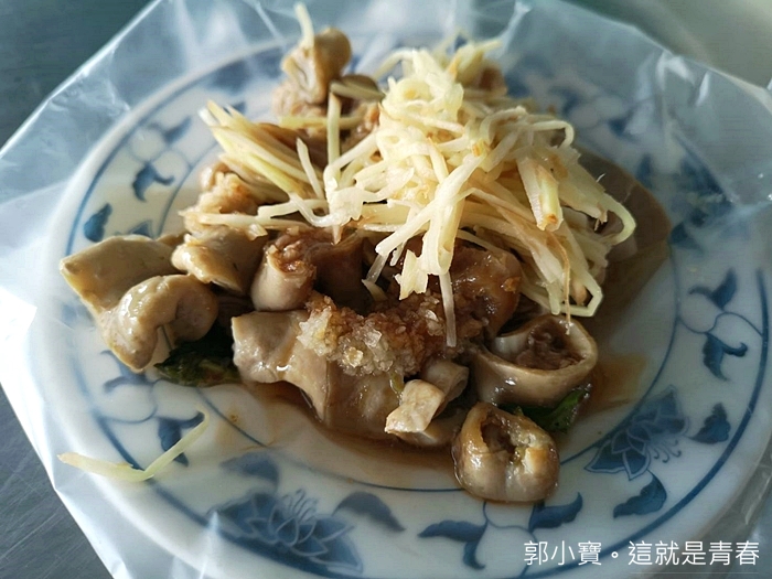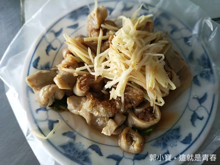 | 糯米腸也是跟九層粿一樣的呈盤方式,我個人也很愛它們家的糯米腸,外皮有點焦脆口感,但是糯米帶點黏性口感很好,搭配的醬油膏跟油蔥滋味也很棒。 |