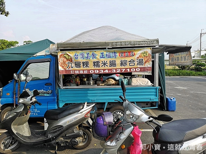 | 停車場前大榕樹下的小貨卡就是我今天要跟大家分享的九層粿了,據說也有美食節目來採訪過,當天平日下午都有客人陸陸續續來用餐,假日也有很多外地人特地跑來這邊品嘗這九層粿的好滋味。 |
