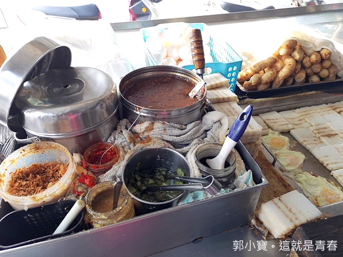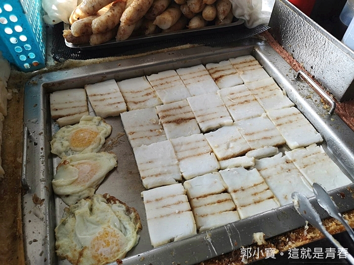 | 整個煎盤都是滿滿的九層粿,看起來就很好吃的感覺,這攤車一賣就是十來年的好生意。 |
