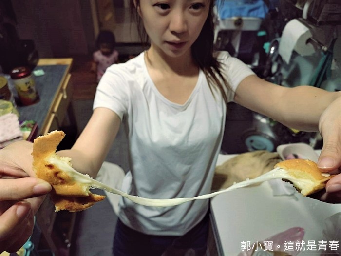 | 它們家的牽絲起司真的很會牽,拉開超長的牽絲起司看起來就好厲害,吃起來的口感也很不錯,起司香味也有出來,這一款是很受歡迎的口味。 |